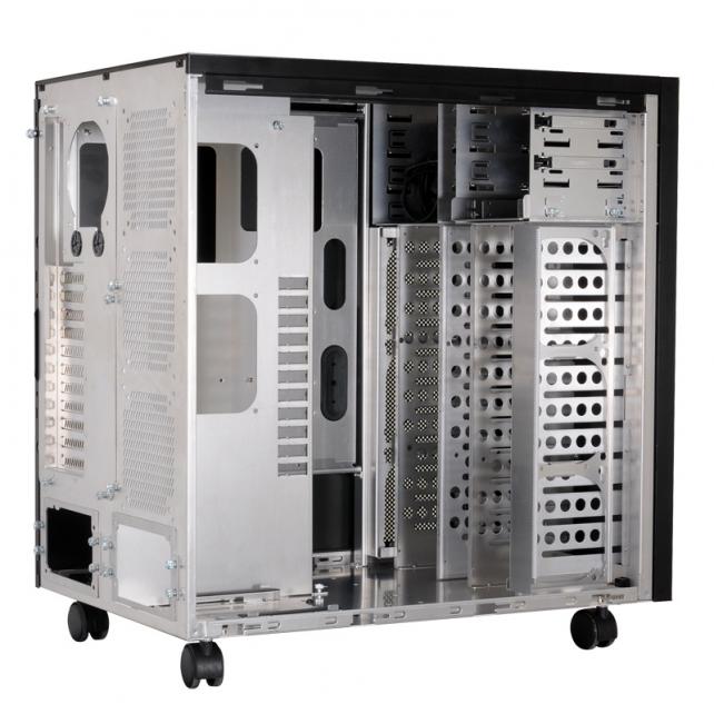 This massive Lian Li chassis sits on four roller wheels, so no matter how much hardware is put inside, transportation of the PC-D8000 is never a problem.
