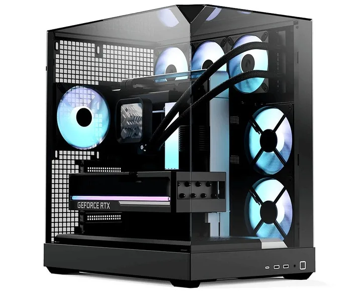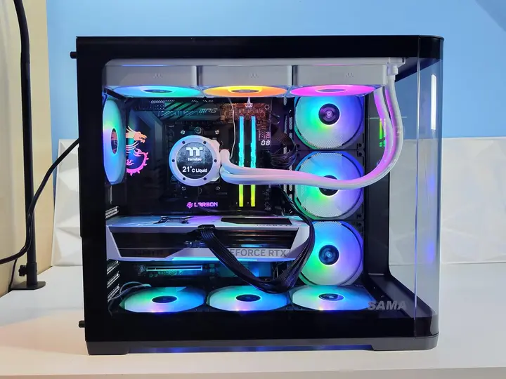 The SAMA V60 Mid Tower Case is a airflow-focused chassis designed for builders who want performance without compromising on style. Its standout feature is the curved tempered glass front panel, which not only adds a premium aesthetic but also enhances airflow when paired with the mesh side intakes.