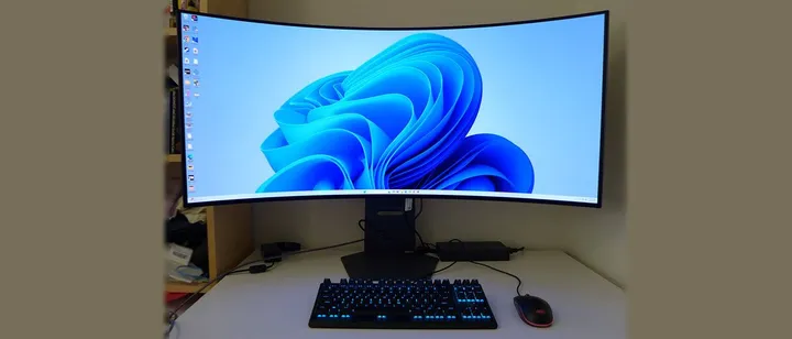 Very curvy OLED gaming monitor with a 21:9 45-inch screen running at 5120x2160 pixels