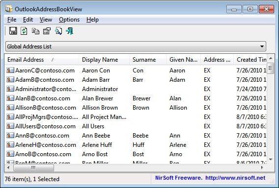 OutlookAddressBookView is a free email utility that displays the details of all recipients stored in the address books of Microsoft Outlook. You can easily select one or more recipients from the list and export them into tab-delimited/comma-delimited/XML/HTML file, or copy them to the clipboard and then paste the list into Excel.