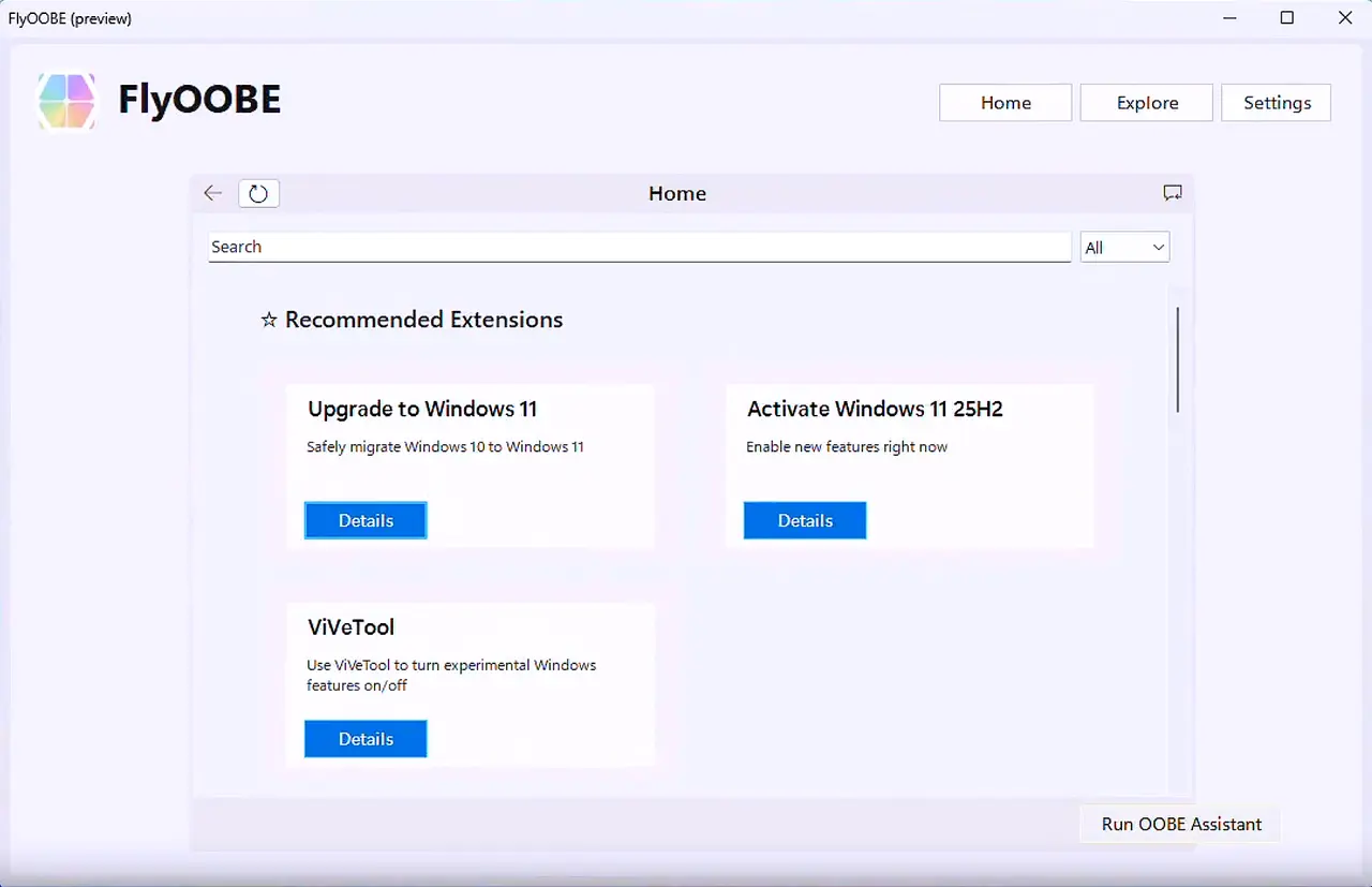 Belim has released a preview release of FlyOOBE 2.0, a Windows setup assistant designed for users wanting to install Windows 11 25H2 on unsupported hardware. It's not just the same simple OOBE tool we knew from before; this version shows how it has developed over time into something more versatile, a customization and modding platform with user extensions.