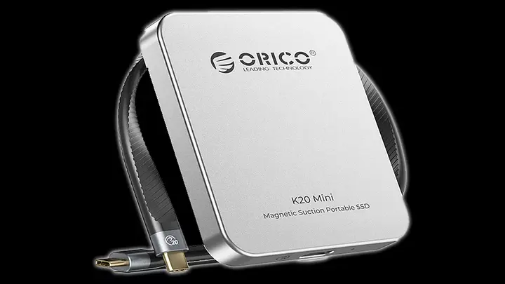 The ORICO K20 Mini 1TB Ultra-thin Magnetic Portable SSD packs a punch with external storage, pops on with magnets, performs well over USB Type-C 20Gbps.