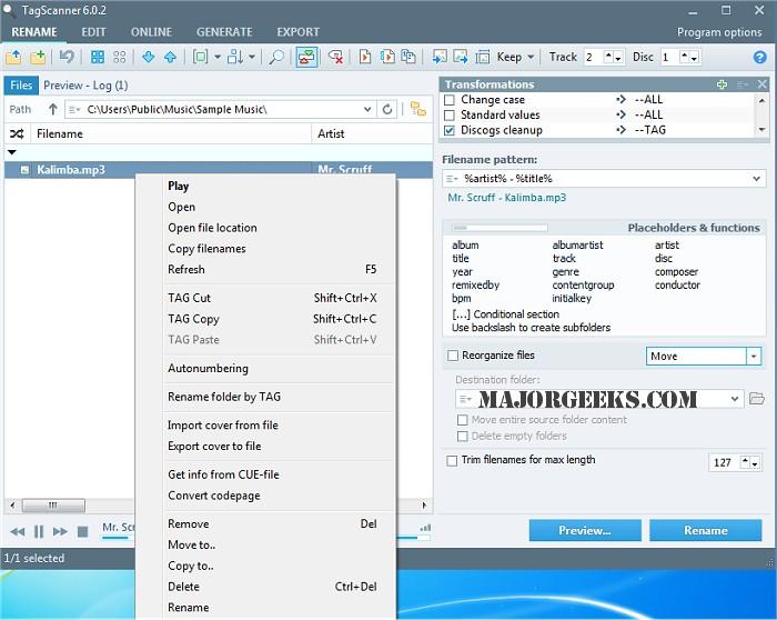 TagScanner can organize and manage your music collection with renaming, tag editing, album covers, album info and more.