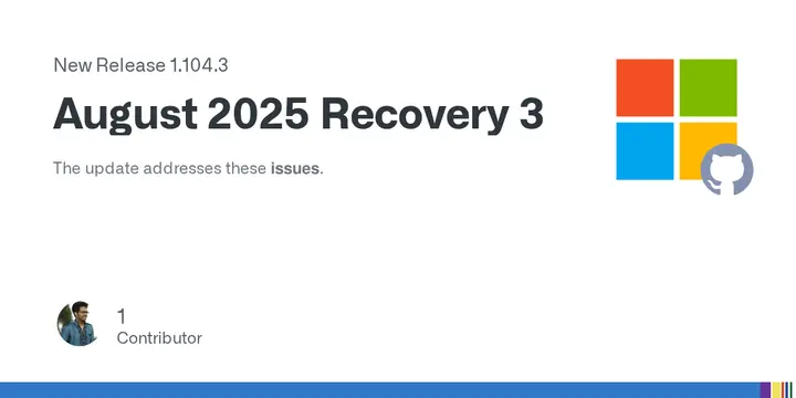 Visual Studio Code 1.104.3 (August 2025 Recovery 3) released