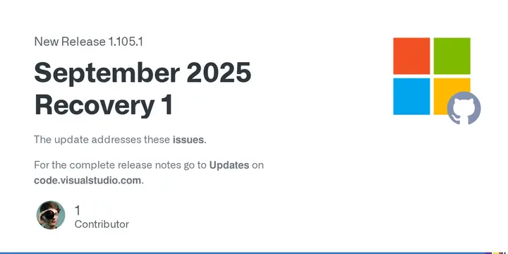 Visual Studio Code 1.105.1 (September 2025 Recovery 1) released