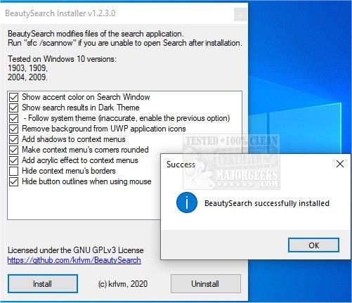 BeautySearch is an Open Source Windows 10 Search Box appearance tweaker that allows you to customize its context menus and more. BeautySearch is a simple option for those that wish to tweak the appearance of various aspects of your Windows 10 machine through a pre-compiled list of tweaks.
