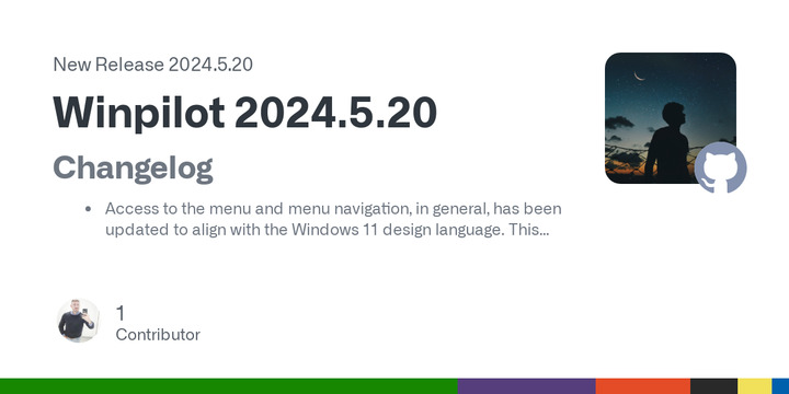 Winpilot 2024.5.20 has been released. The interface has been modernized to match the style of Windows 11, and Clippy is included in a notification bar to lessen its visual impact. The front end user interface's JavaScript code has been fine-tuned, which makes page loads much quicker. The Arc Browser download link is now available in the Install menu.
